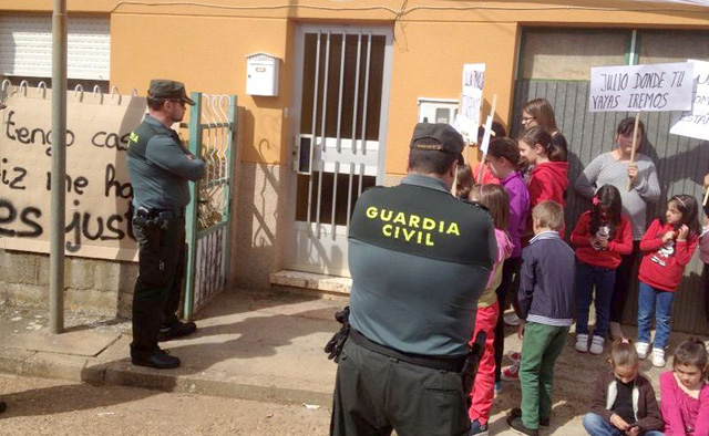La Guardia Civil acudió este domingo a Sueros de Cepeda, donde actualmente residen Julio y su tía, para ejecutar la sentencia judicial y llevarse consigo al pequeño para entregarlo a su familia materna. Se encontraron con que gran parte de los vecinos del pueblo se había concentrado para a mostrar su apoyo al pequeño. No era la primera vez que la Guardia Civil intentaba ejecutar la sentencia. En una ocasión anterior, el propio Julio se negó a marcharse. Esta vez, el pequeño sufrió un ataque de ansiedad y tuvo que ser atendido por una ambulancia y posteriormente trasladado al Hospital de León, lo que frustró el trabajo de los agentes.