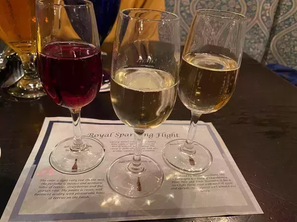 El Champagne brut Enchantée fue uno de los favoritos de la mesa, es una de las marcas privadas de Disney que sólo está disponible dentro de Walt Disney World y el parque Disney's California Adventure.