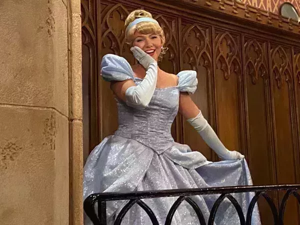 Mientras disfrutábamos de nuestros aperitivos, Cenicienta visitó el comedor. Fue anunciada con un estilo regio y saludó a los espectadores.