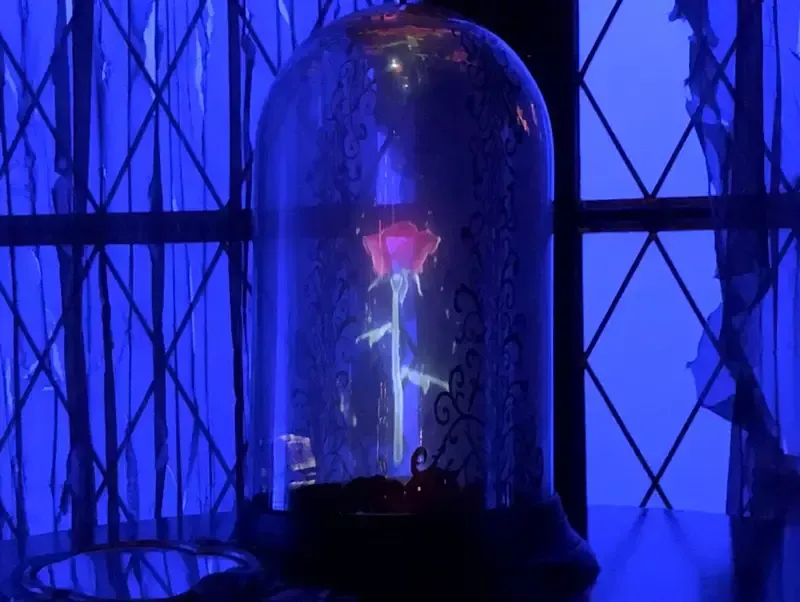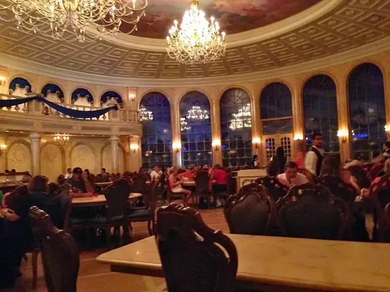 El restaurante está basado en "La Bella y la Bestia", y hay tres salas en las que puedes sentarte: el salón de baile, la galería de rosas y el "Ala Oeste".
