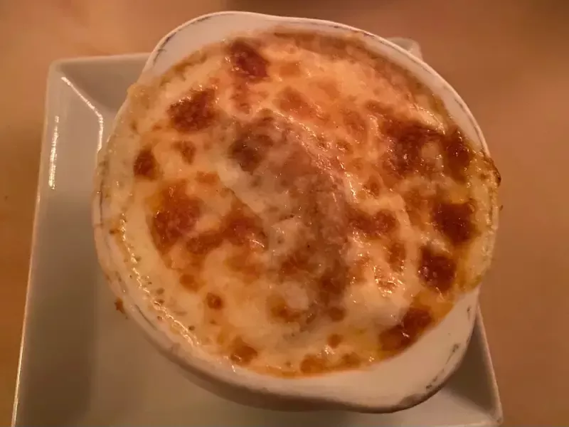 La ensalada era deliciosa, fresca y ligera. La sopa era tradicional, con mucho queso - era casi demasiado lleno para un aperitivo.