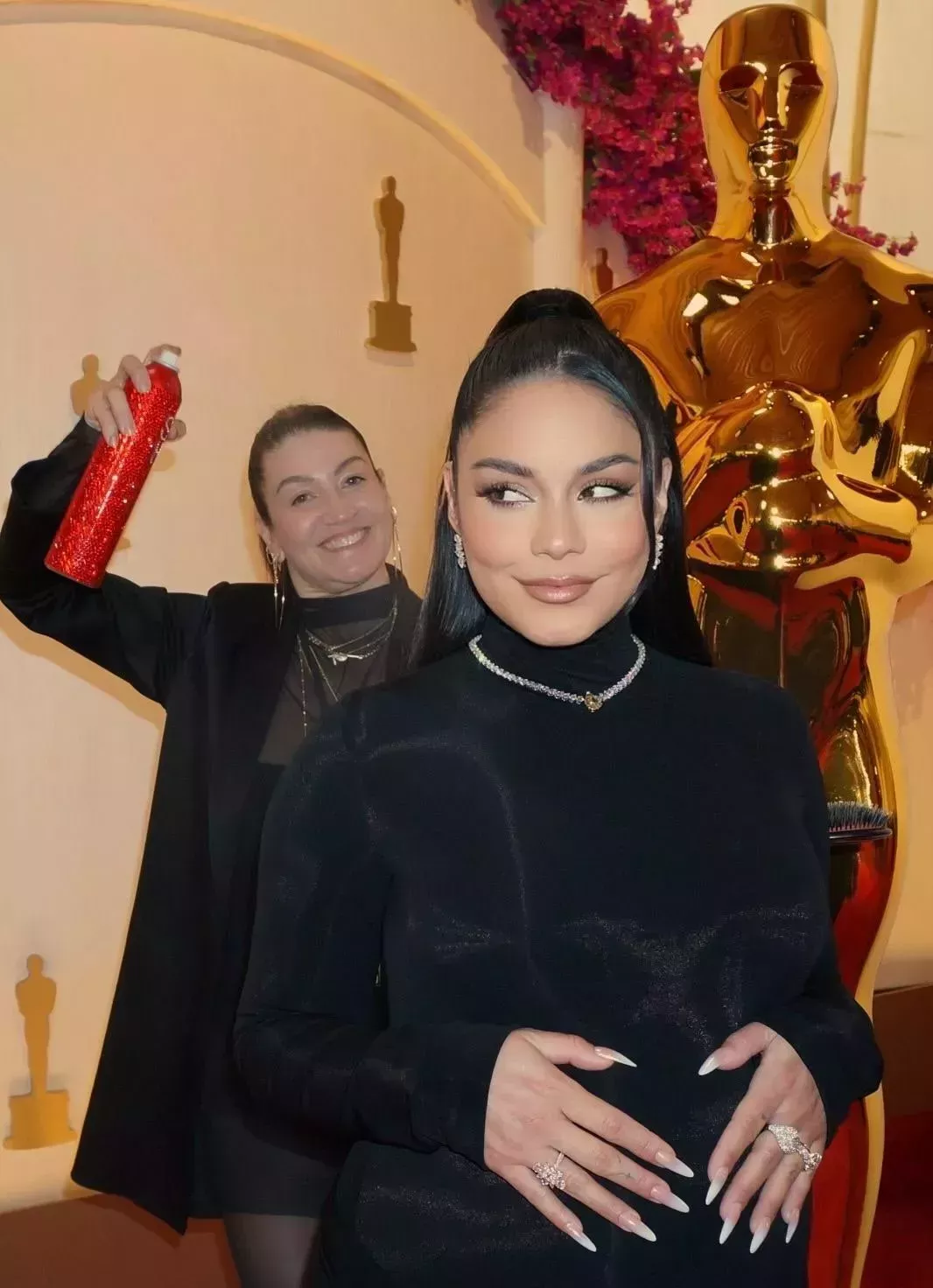 Vanessa Hudgens anunció su embarazo en los Oscar 2024 con más de medio metro de extensiones de pelo
