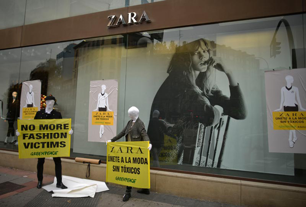 Zara fue acusada hace unos meses de que sus fábricas contaminaban mucho. Ahora, por la presión que Greenpace ha sometido a la firma española, la compañía se ha comprometido a eliminar de sus cadenas de produción y distribución las sustancias tóxicas de aquí al año 2020.