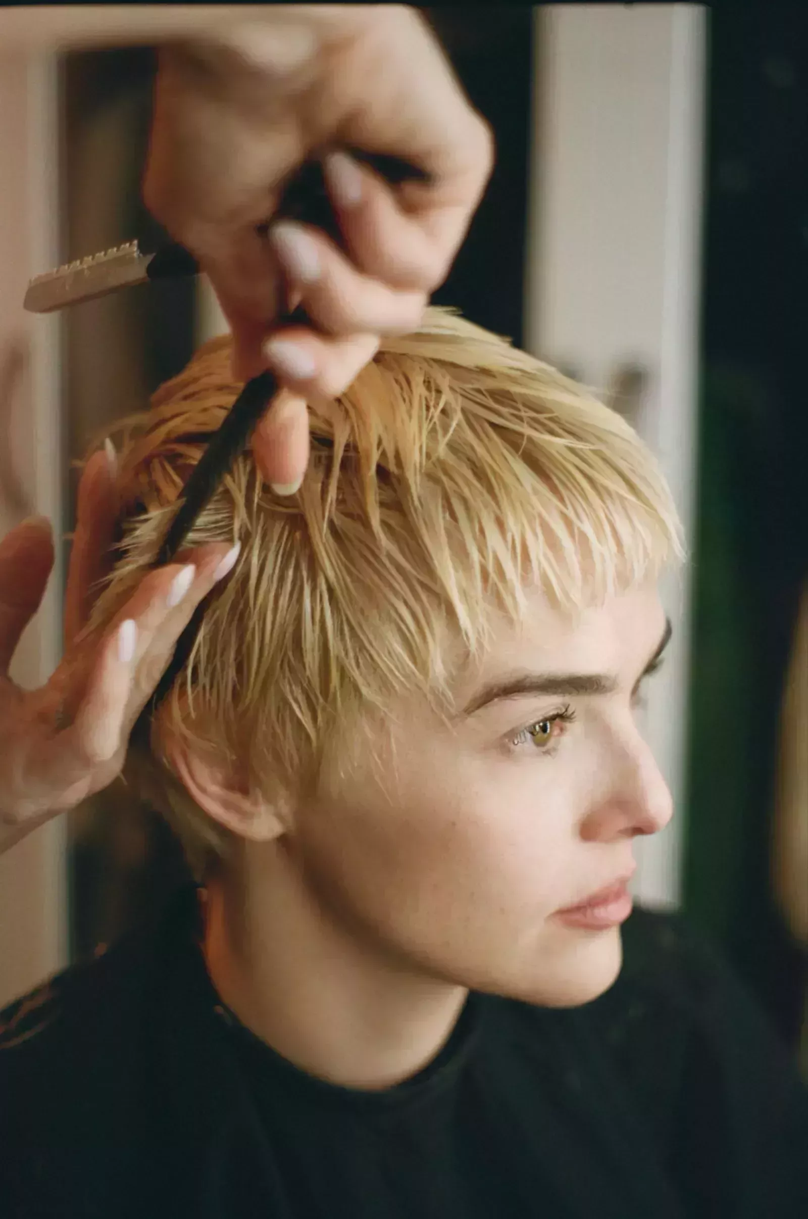 ¿Recuerdas que mencioné a Jean Seberg como uno de los principales iconos del pixie rubio? No es una coincidencia. Deutch interpretará a la fallecida actriz en una próxima película de Richard Linklater. La colorista Tracey Cunningham y la peluquera Bridget Brager fueron las encargadas de la transformación, y un vídeo publicado por Cunningham muestra que Deutch participó activamente en el proceso, cogiendo las tijeras para su propio pelo en un momento dado.
