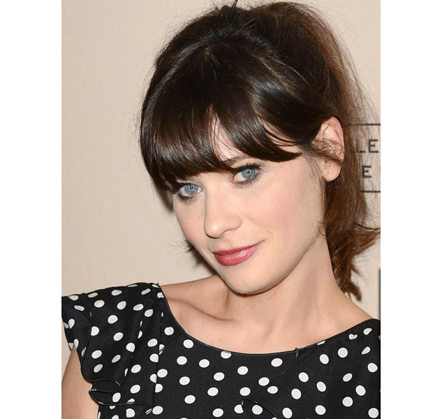 Zooey acudió a la fiesta de la Academia de la Televisión estadounidense con una sencilla coleta alta, algo cardada por la parte de atrás para conseguir más volumen en esta zona de la cabeza, y con su característico flequillo abierto por delante, dejando algunos mechonchitos sueltos por la oreja.